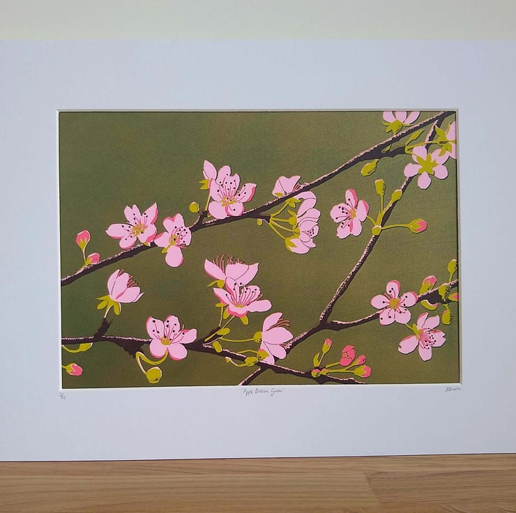 A hand-pulled screen-print called ‘Apple Blossom Green’.