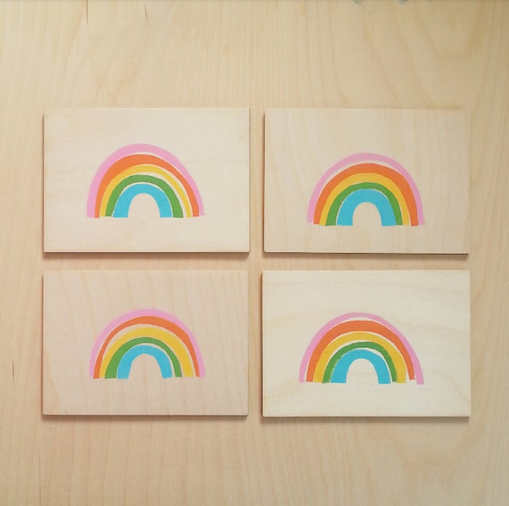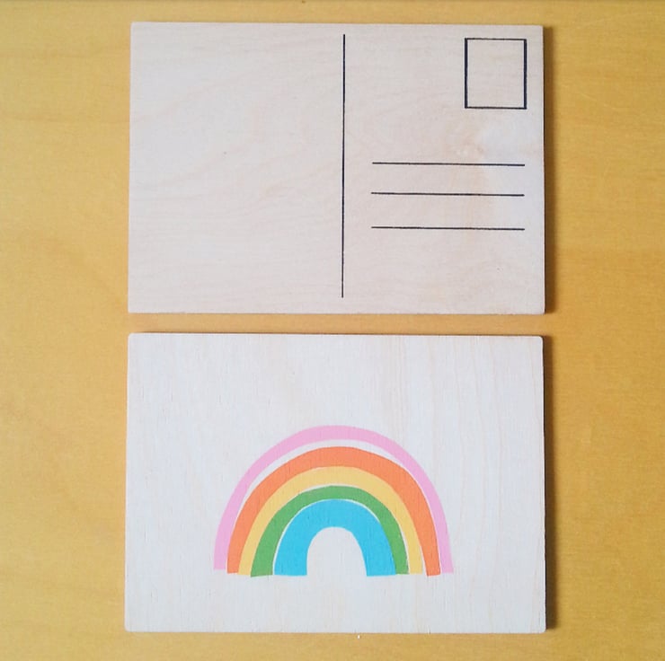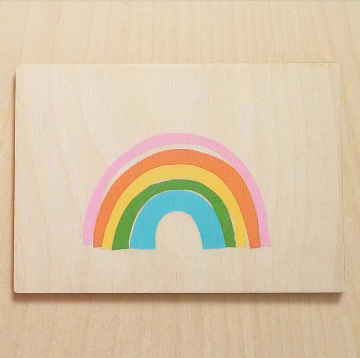 This hand-printed wooden postcard is a lovely way to let someone know you are thinking about them; a symbol of hope, peace, promise and pride, it also makes a great keepsake to display in your home.