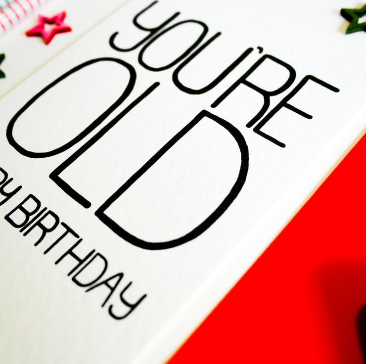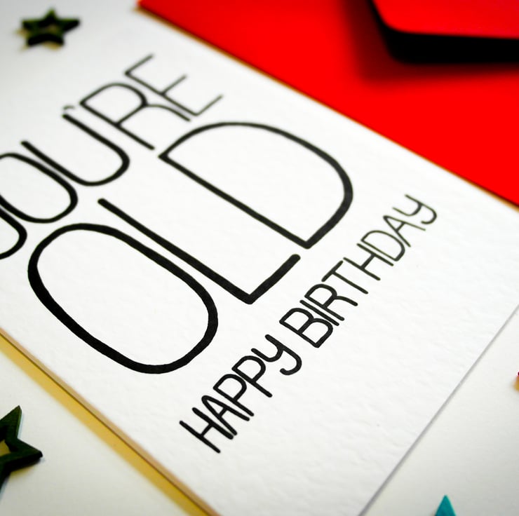 Greeting on front: HAPPY BIRTHDAY YOU'RE OLD