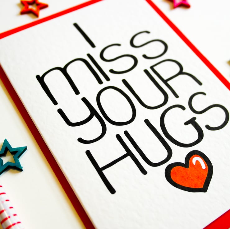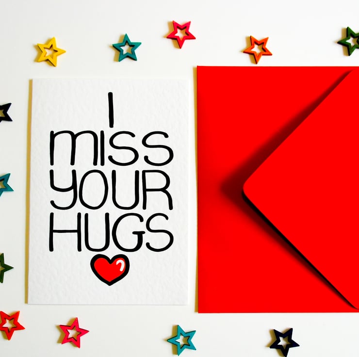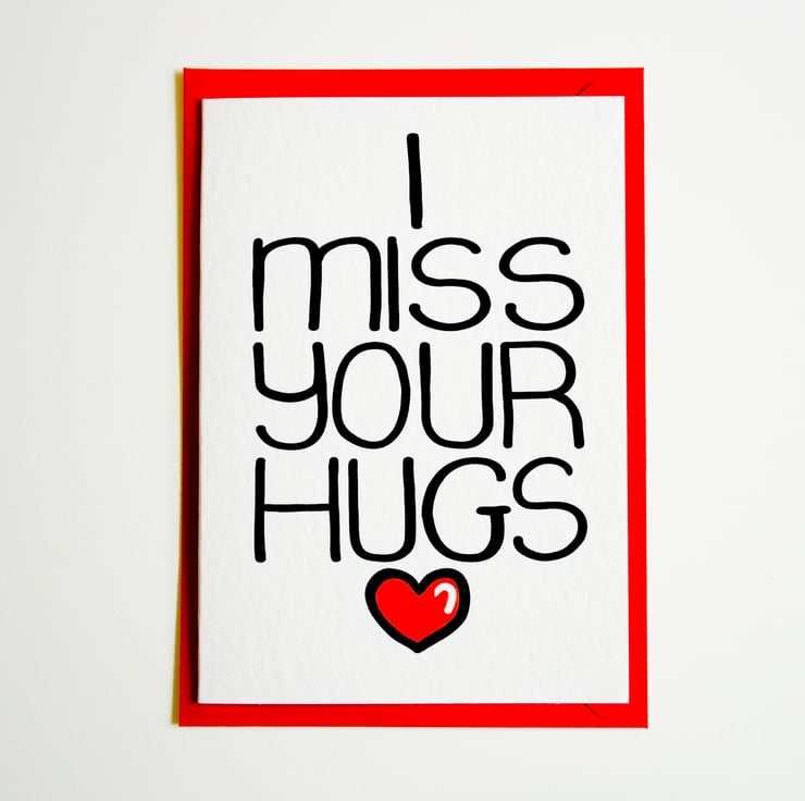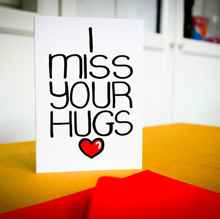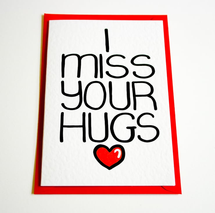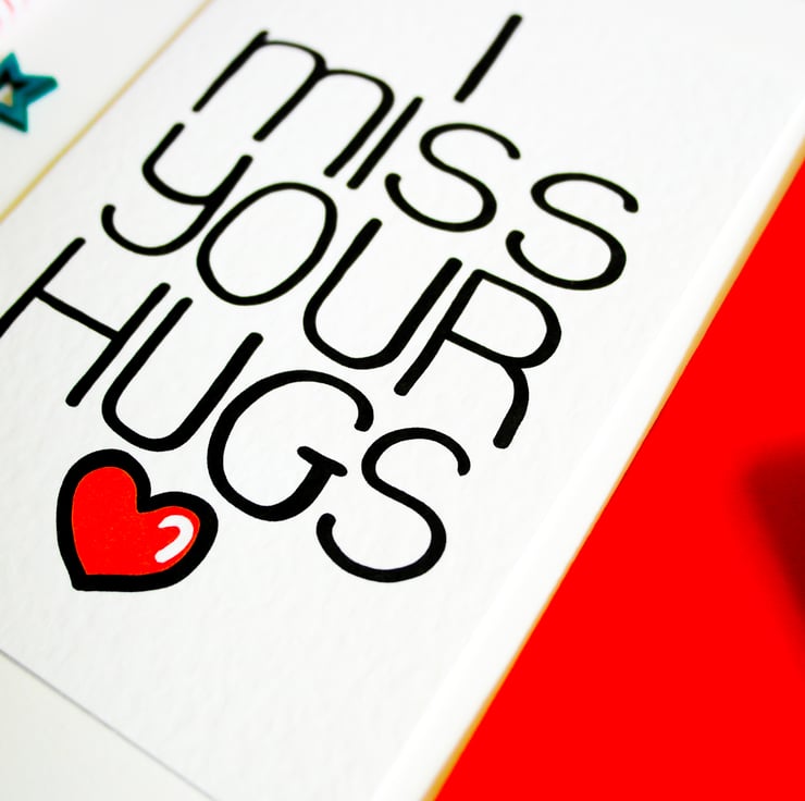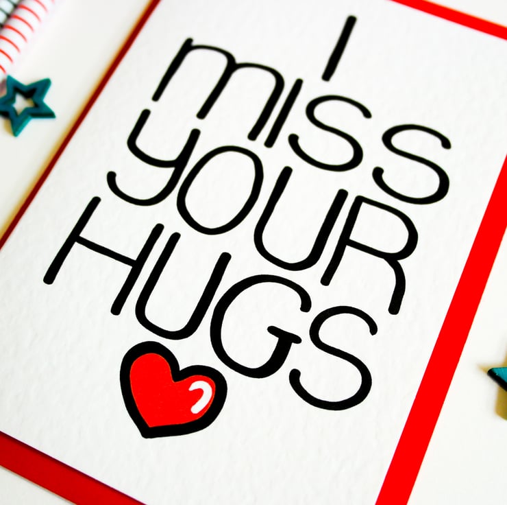 A perfect Card to say how much you miss your loved one and their hugs. This card can be used to express how much you love and miss someone from afar with a personal touch that only a card can deliver.