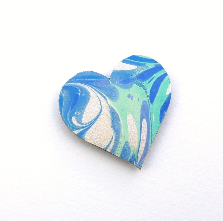 I have used some of my unique marbled paper on a wooden heart shape and fixed a magnet to the reverse for a pretty but practical and unique item. Perfect for a fridge door in need of some love or if you need a lovely magnet to hold a special picture, drawing or photo in place on a metal surface.