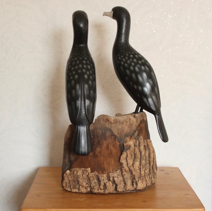 The inspiration was a large solid piece of driftwood. Cormorants were the only choice!