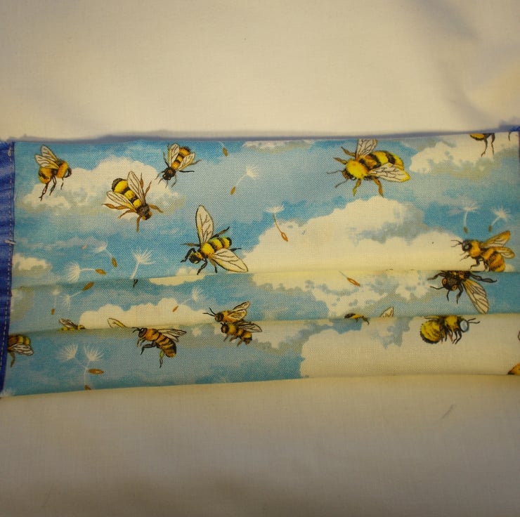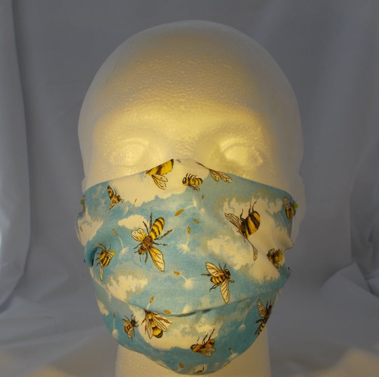 This is a washable double fabric face covering with interior pocket if required It is made from 100% cotton and comes with pre threaded cotton ties or elastic ties for you to adjust to size, please make your choice in the selection option.