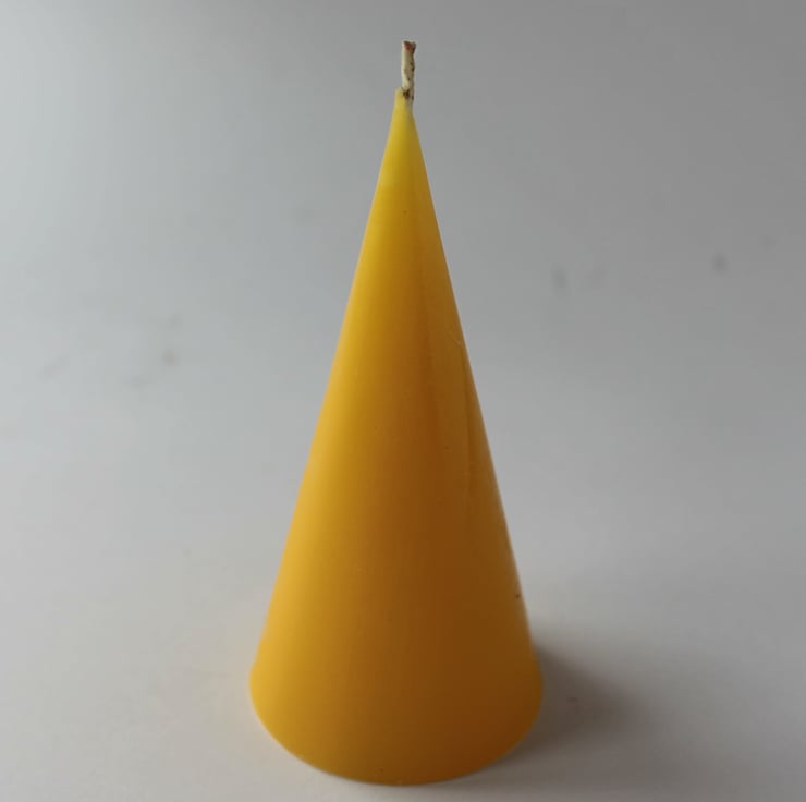 Small beeswax cone shaped candle handmade in mid Wales from Soil Association Certified organic beeswax.