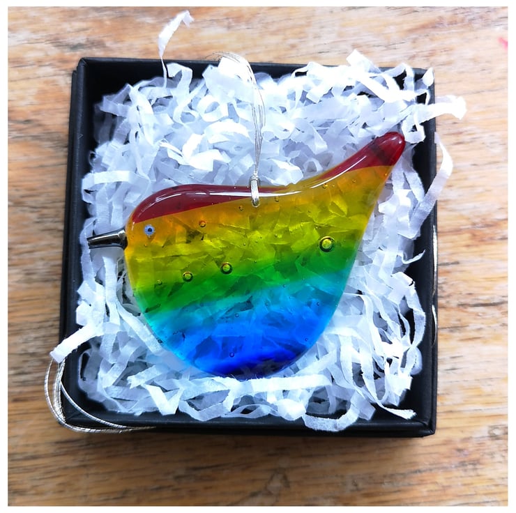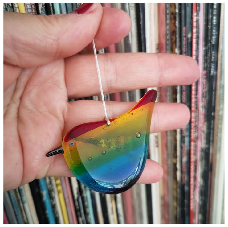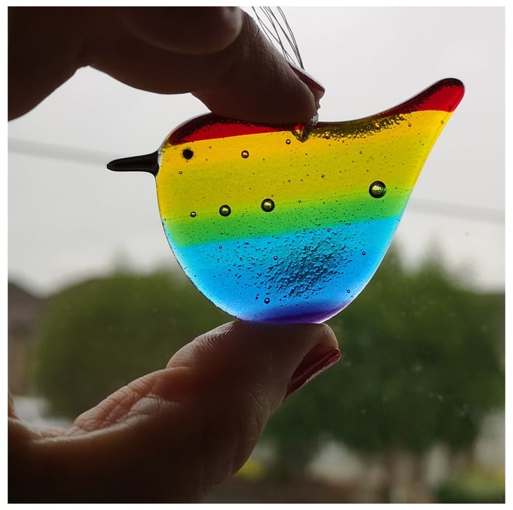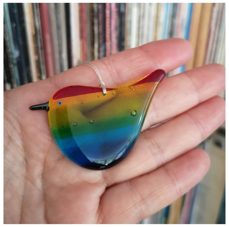 These birds are a labour of love as I make the rainbow glass and then grind each one into shape using cold working tools and machinery, before a second and sometime third firing. See images.