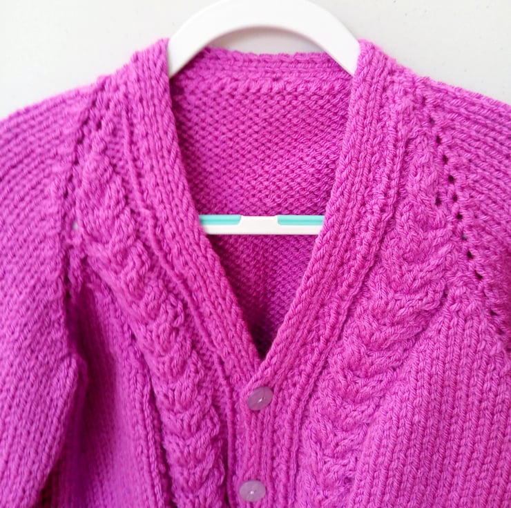 Cabled Cardigan Hand Knitted in Chunky Yarn for a Girl, Cabled Child's Cardigan, Child's Chunky Cardigan, Birthday Gift, Winter Cardigan, Children's Gift Idea
