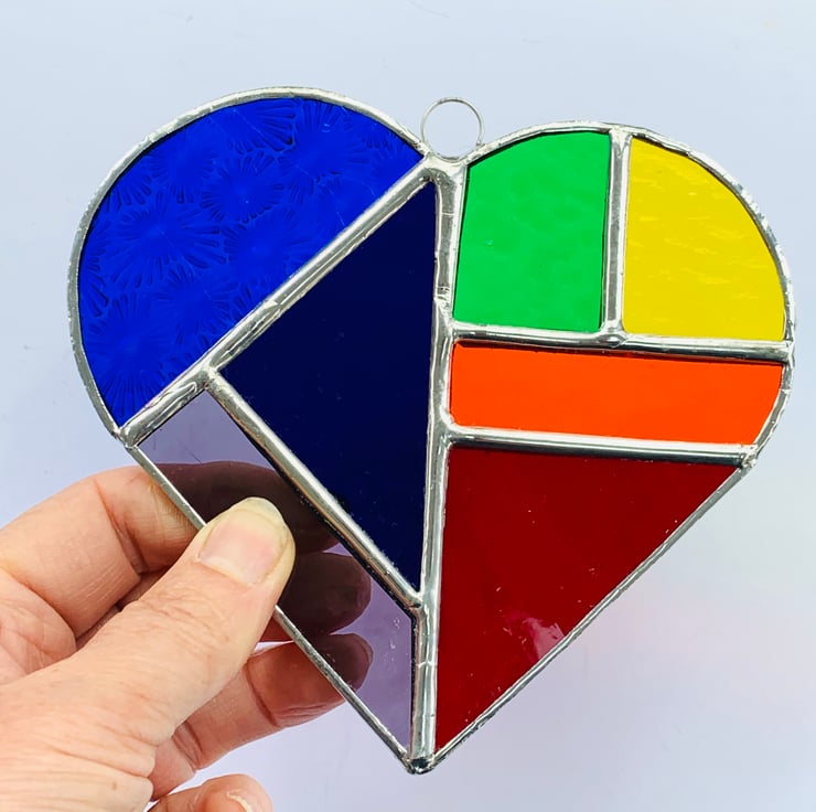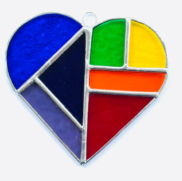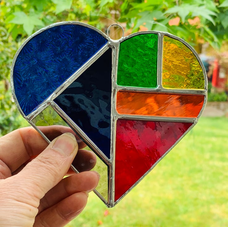 This beautiful heart is made from stained in in all the colours of the rainbow.
