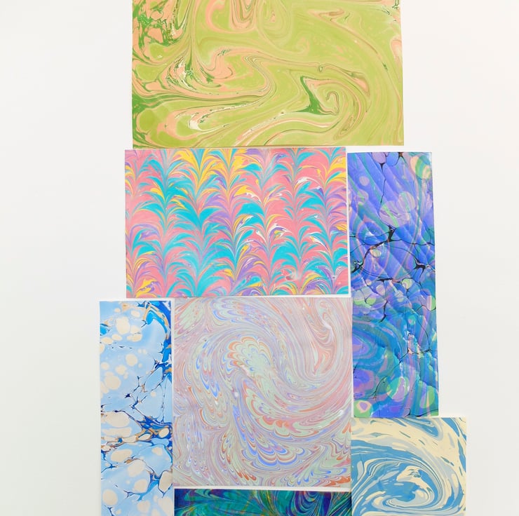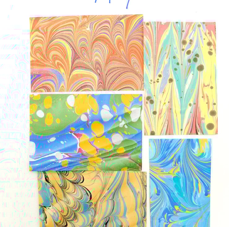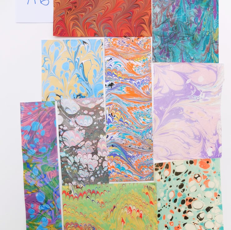All offcuts marbled by me. The images show the actual sheets you will receive.