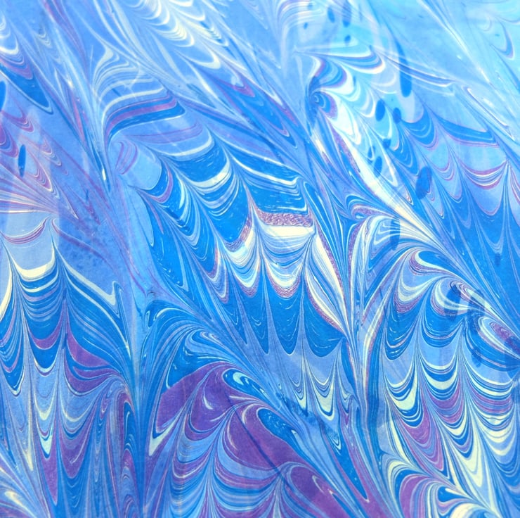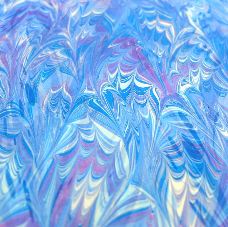 The result is a a multi layered effect where the first marbling shows through the top marbling and gives beautifully detailed pieces.