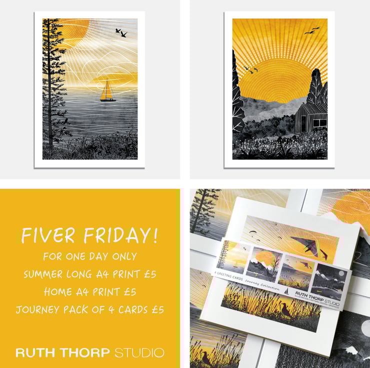 FIVER FRIDAY DEAL: For one day only the A4 Prints and Pack of 4 Cards shown in this listing can be purchased for the special discount price of £5.