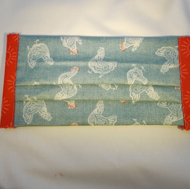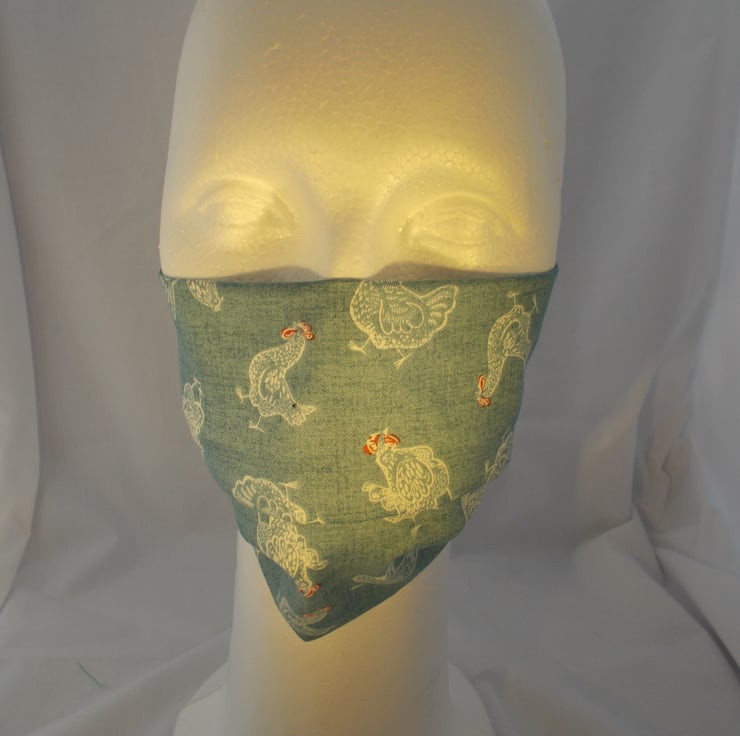 This is a washable double fabric face covering with interior pocket if required It is made from 100% cotton and comes with pre threaded cotton ties or elastic ties for you to adjust to size, please make your choice in the selection option.