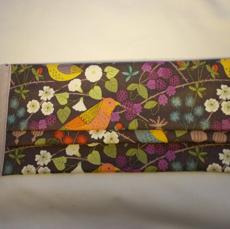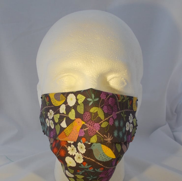 This is a washable double fabric face covering with interior pocket if required It is made from 100% cotton and comes with pre threaded elastic ties for you to adjust to size.