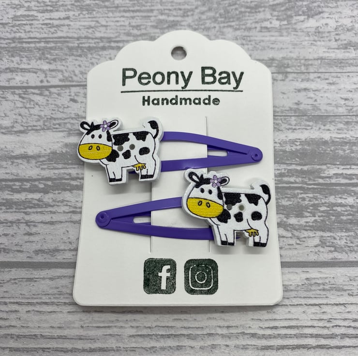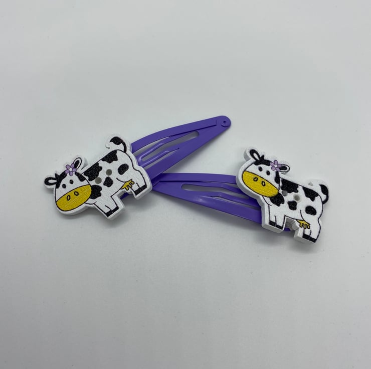 I am a little bit obsessed with cute buttons and as I already make hair accessories I decided to make button clips too! To make these cuties I’ve matched the purple flower in her ear to purple snap clips.