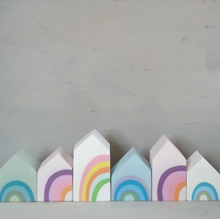 I moved to the countryside in 2019 and had been building up a stash of wood offcuts from other projects, intending to use them for firewood for the coming winter; realising that a lot of this wood was high quality pine which was too good to burn, I came up with the idea of using it to make little houses (a shape which is relatively easy to cut with limited woodworking skills/equipment). As it turns out, little houses are not only en vogue but they are the perfect canvas for experimenting with colour and pattern!