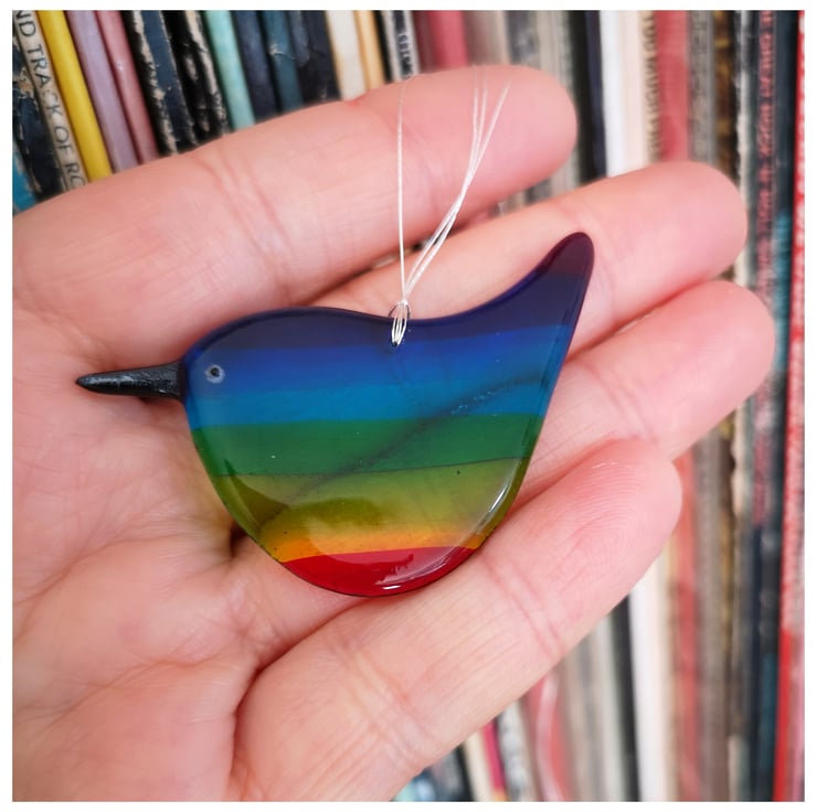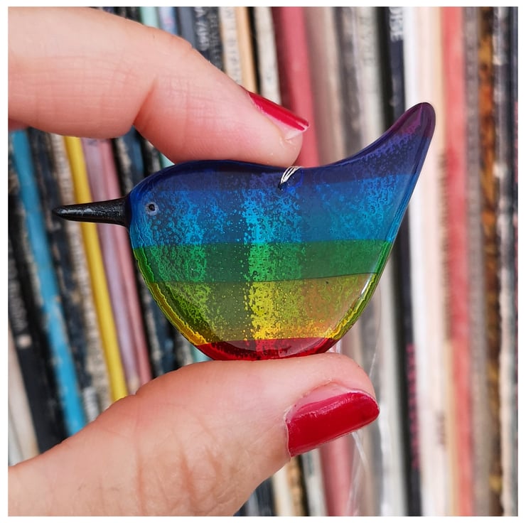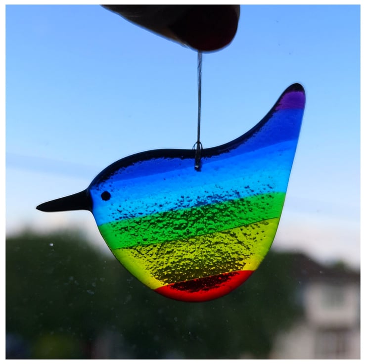 These little birds are a labour of love as I make the rainbow glass and then grind each one into shape using cold working tools and machinery, before a second and sometime third firing. See images.
