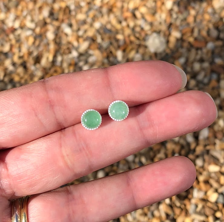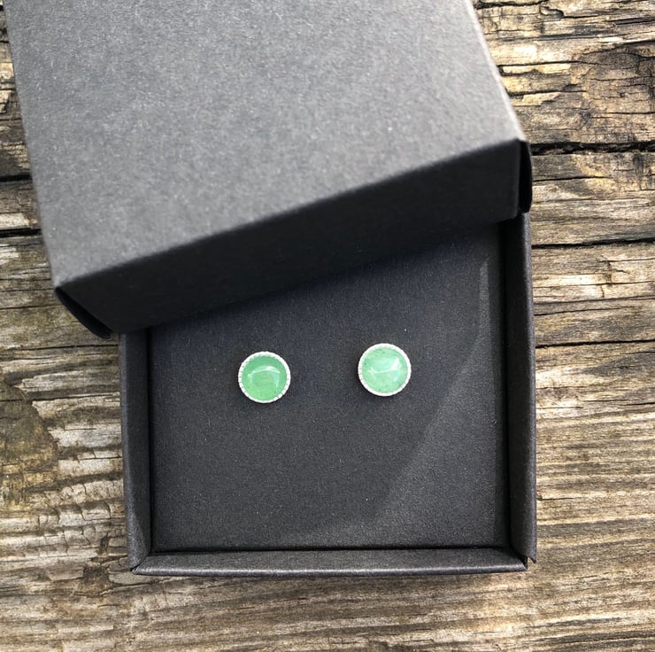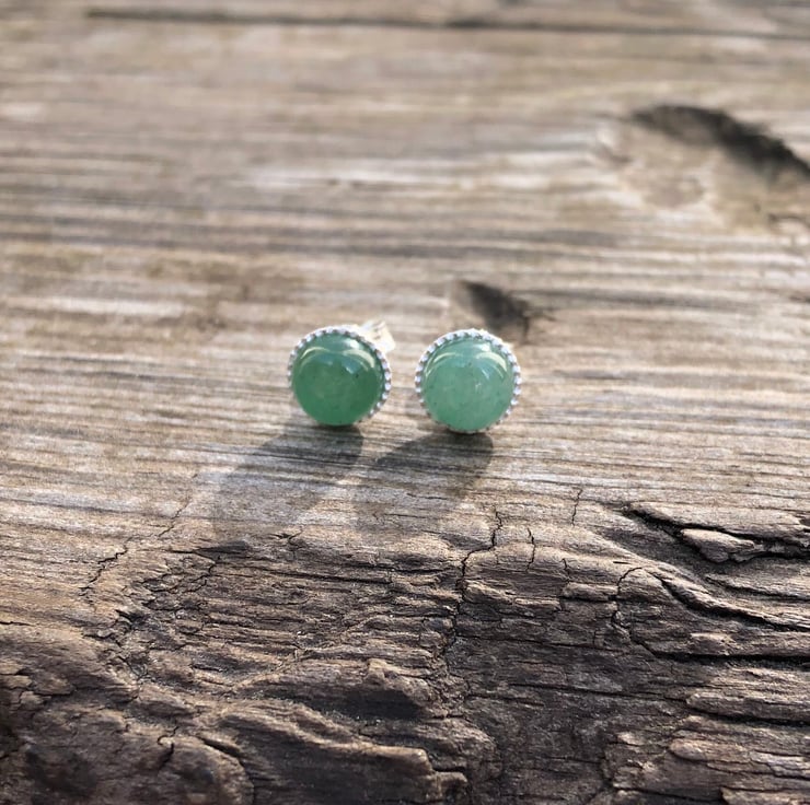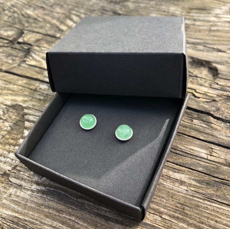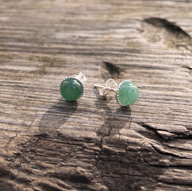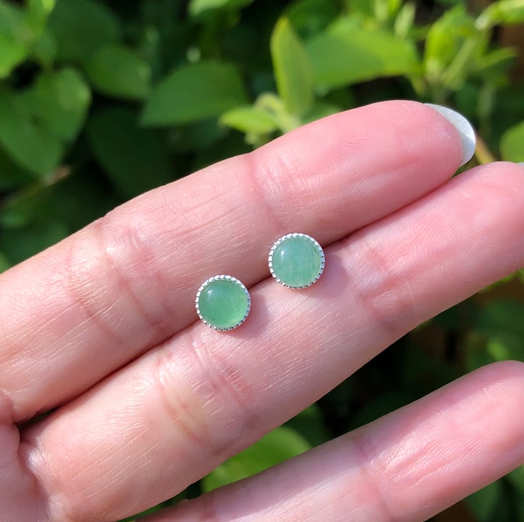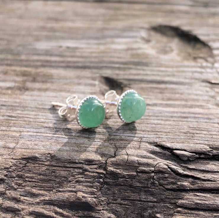 These stunning Aventurine cabochons which measure 6mm have been set in elegant milled edge sterling silver settings making the most delightful stud earrings.