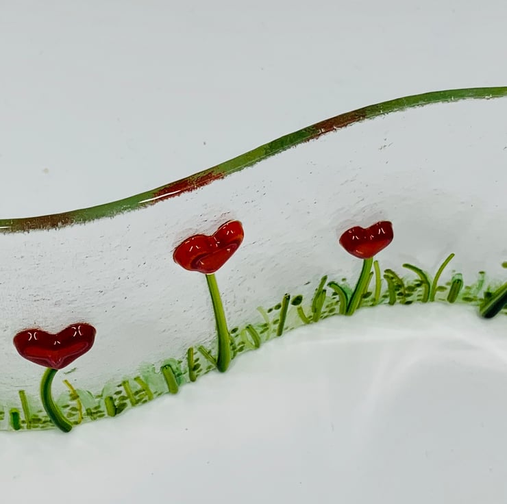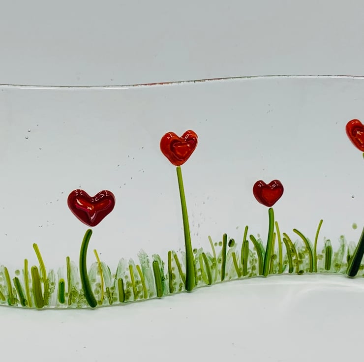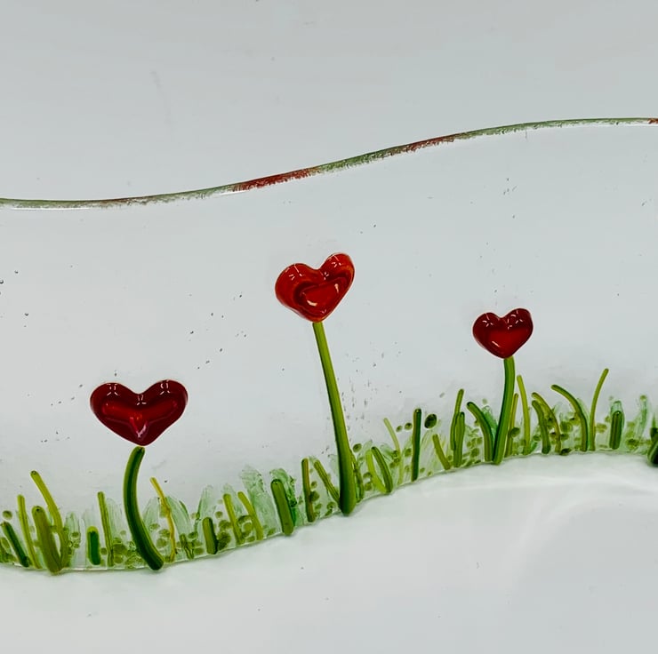 Hand made fused glass heart wave. Looks great displayed on a window sill.