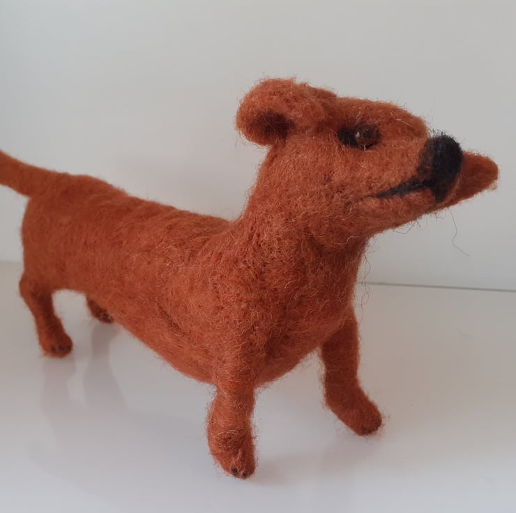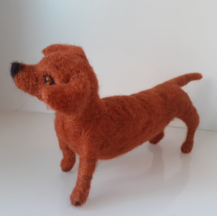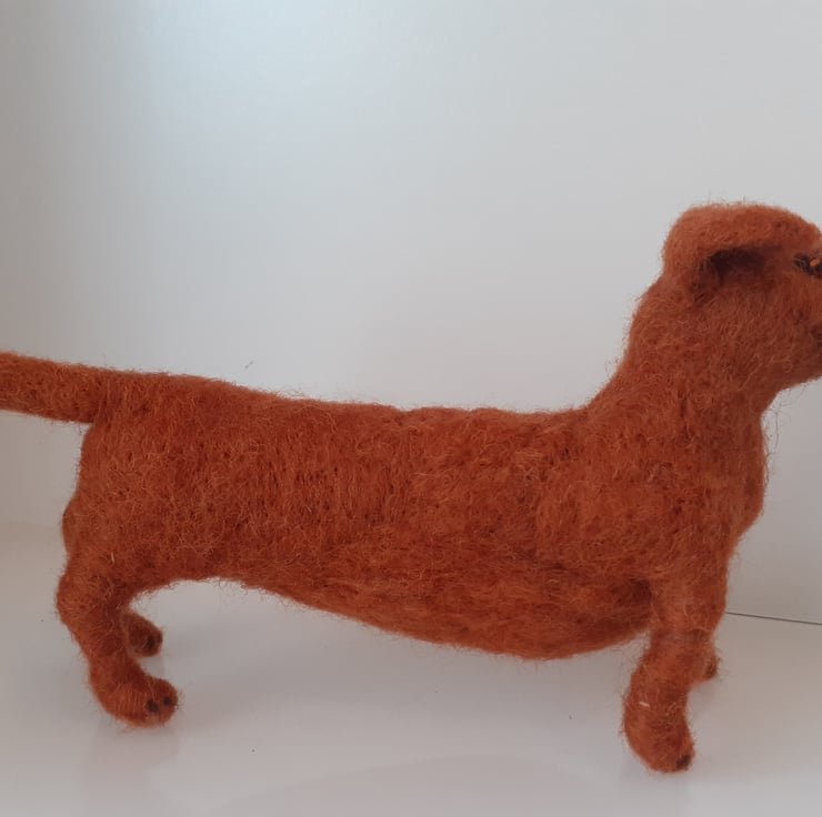 All wool,needle felted on a wire armature, very flexible body and legs, so very easy to pose as desired.