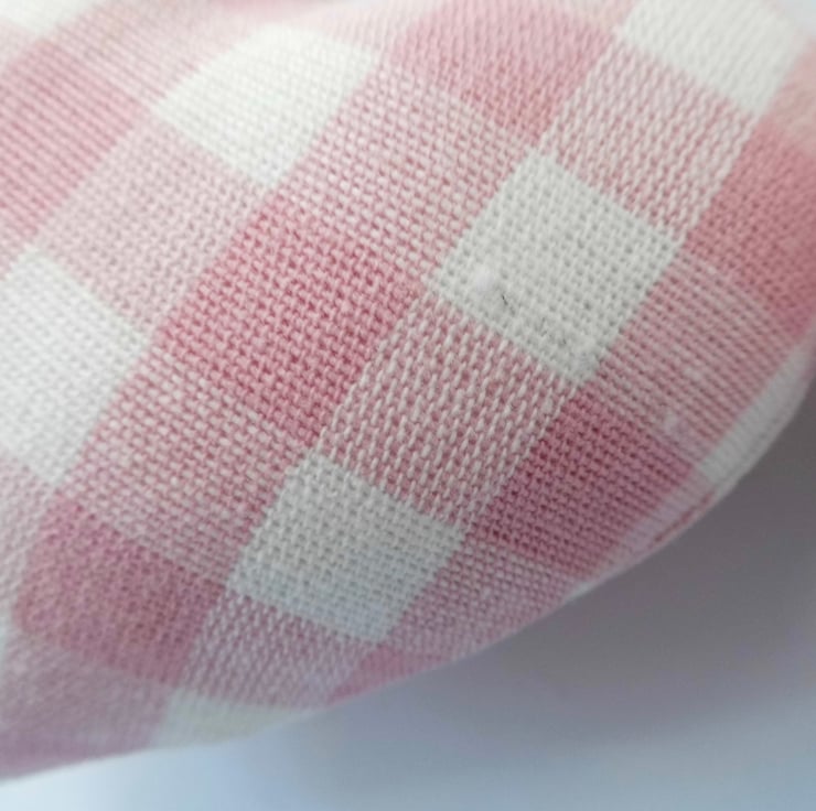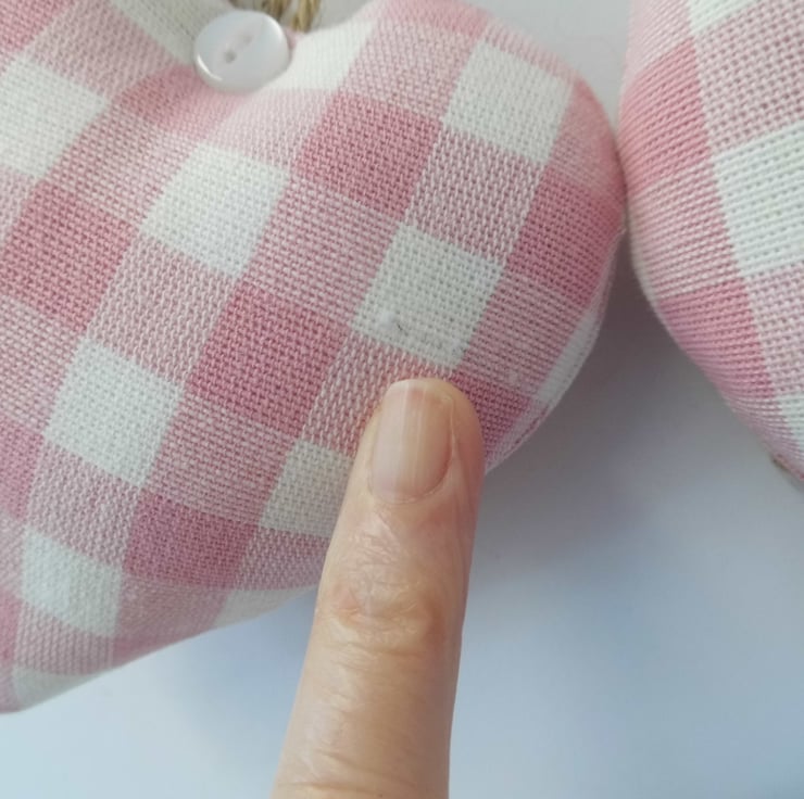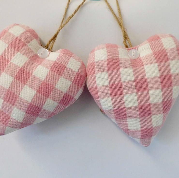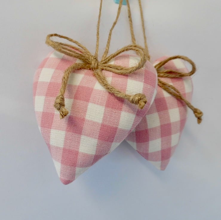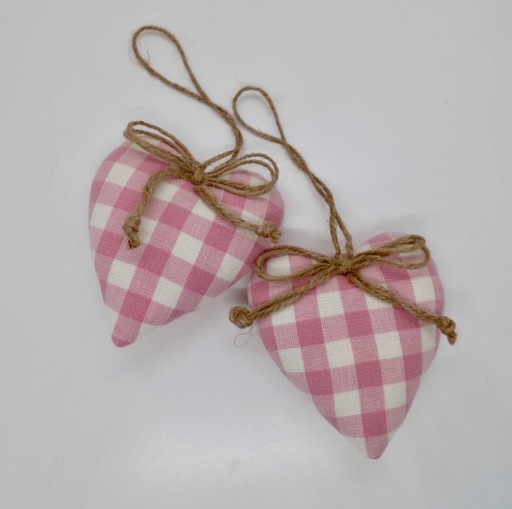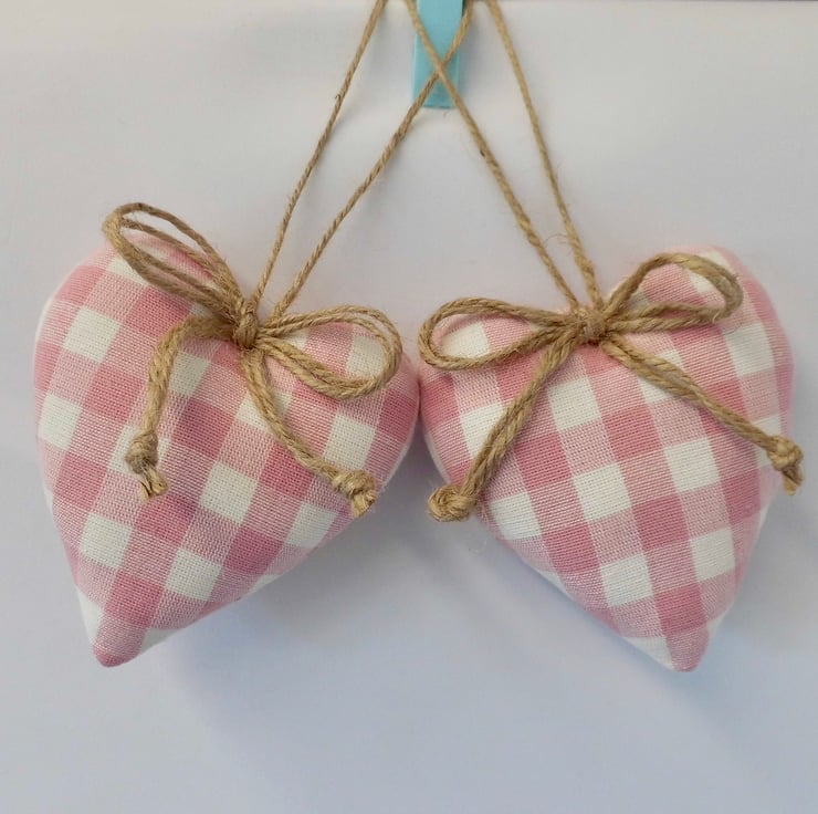 Two heart-shaped door hangers carefully made from Laura Ashley pink gingham, back and front.