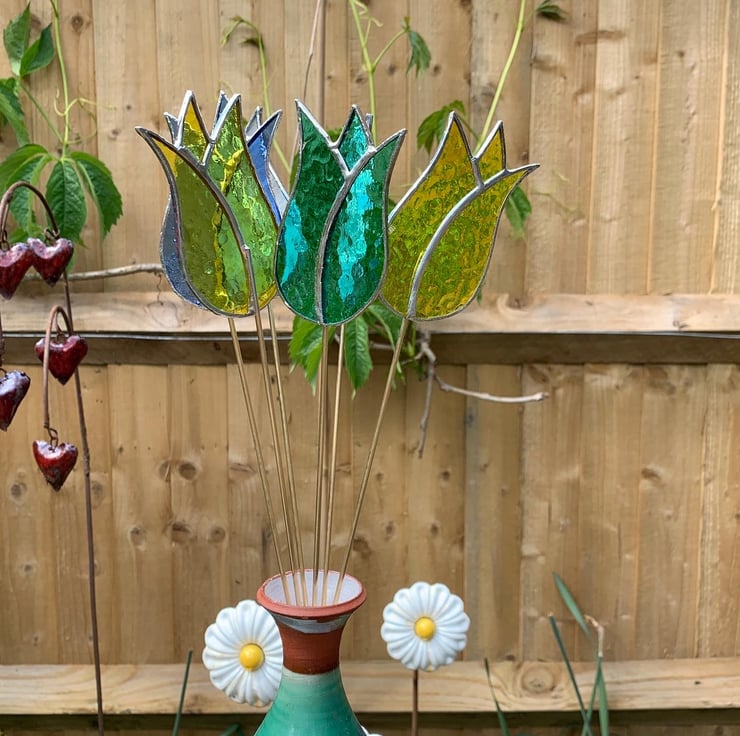 A friend suggested making some tulips to go in plant pots and after sourcing some rods to make the stalks this is what I came up with.