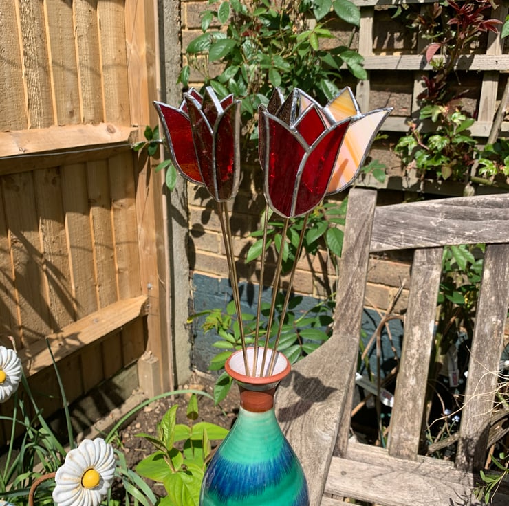 A friend suggested making some tulips to go in plant pots and after sourcing some rods to make the stalks this is what I came up with.