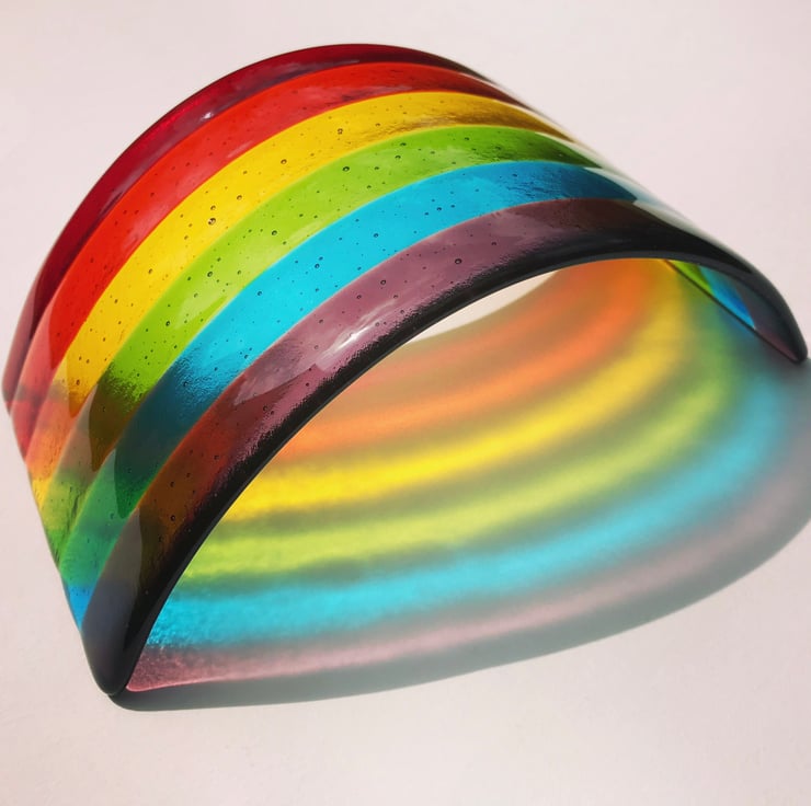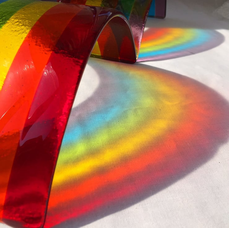 Made from translucent red, orange, yellow, green, blue and purple glass.