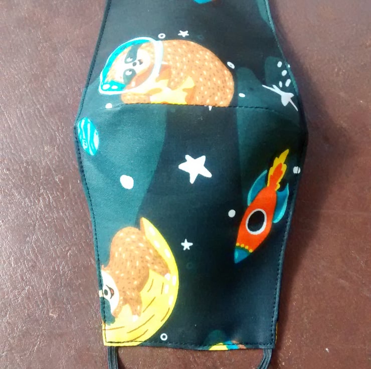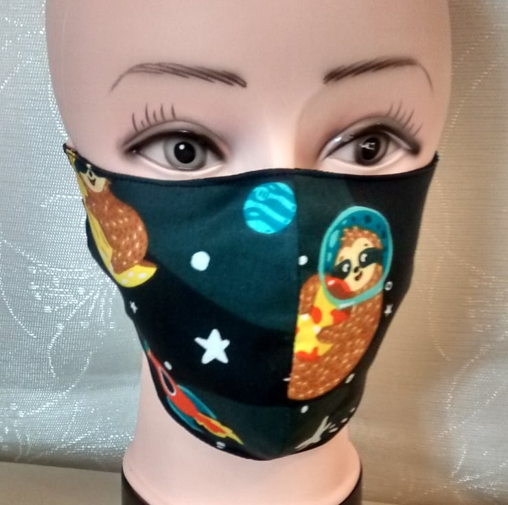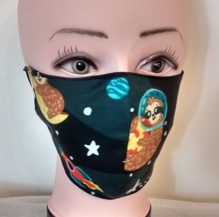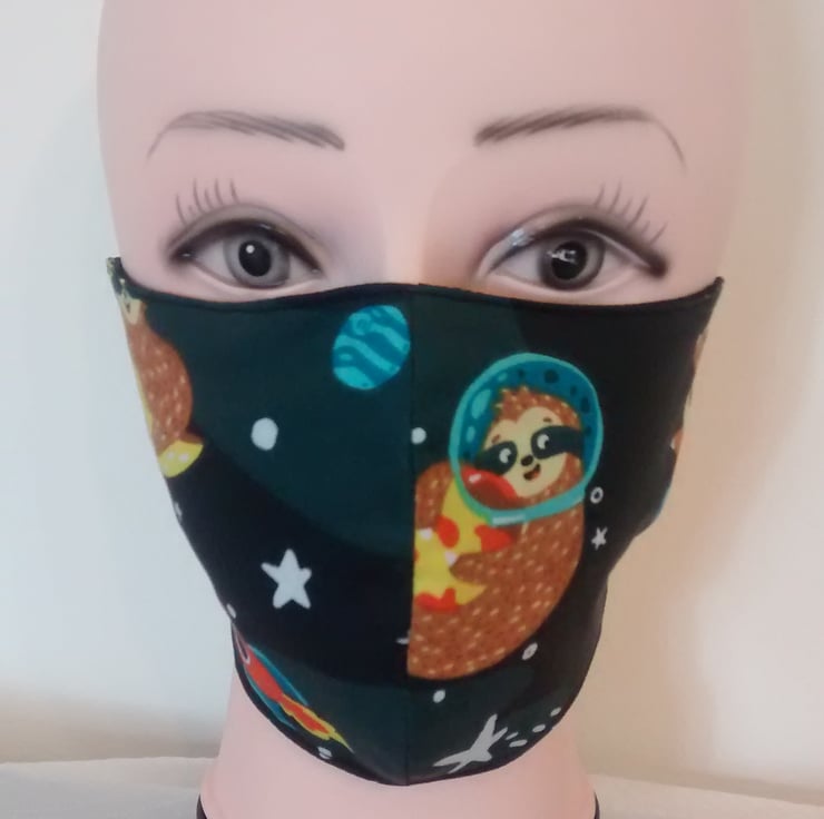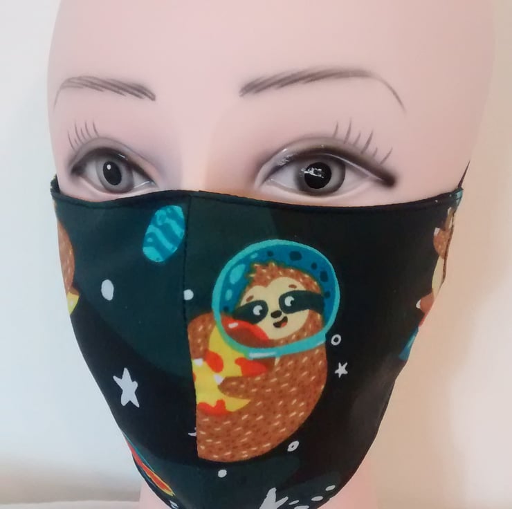 Handmade 3 layers black animal sloth reusable adult face mask.