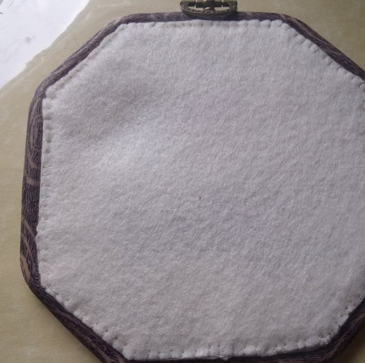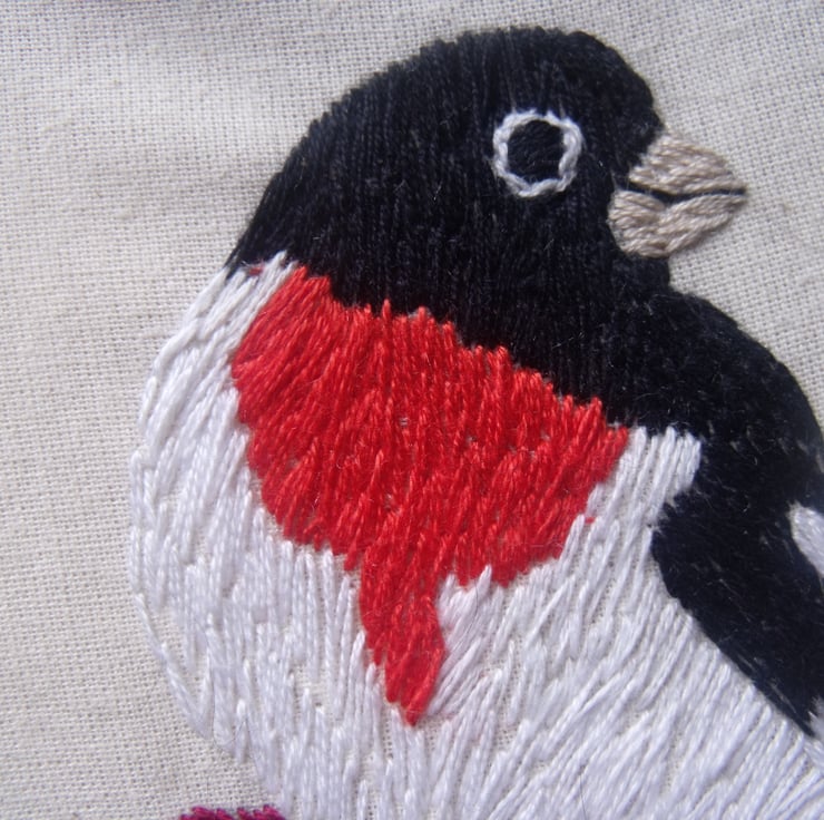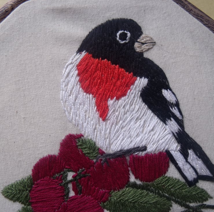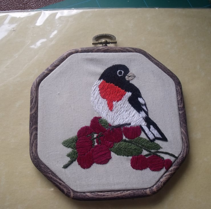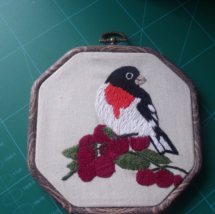 He is worked in good quality thread on a calico background and backed with cream felt. The hoop is wood-effect, octagonal and measures 14cm. It can be hung or propped on a shelf.