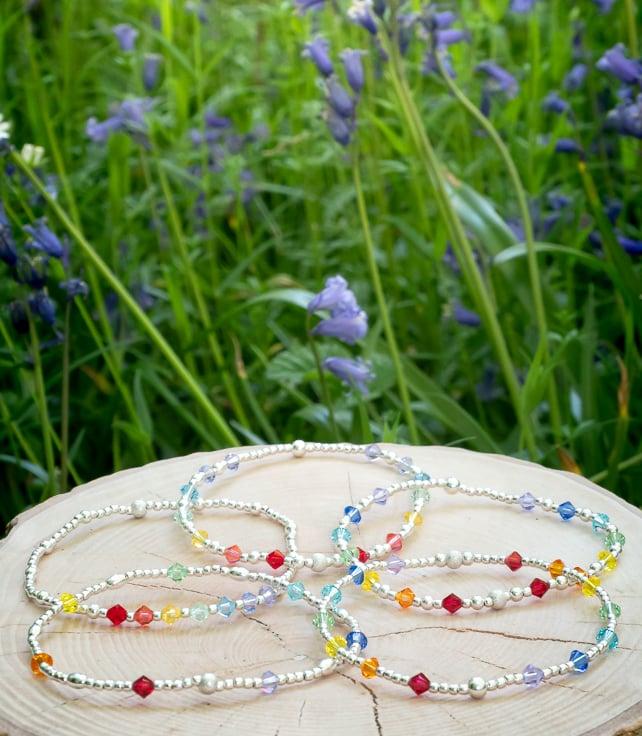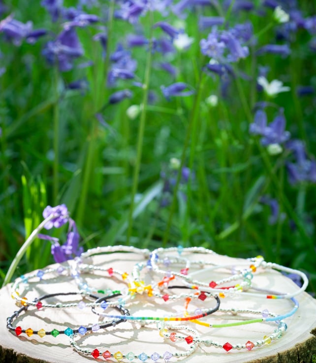 With stretchy jewellers elastic (to slip over your wrist, no clasp),