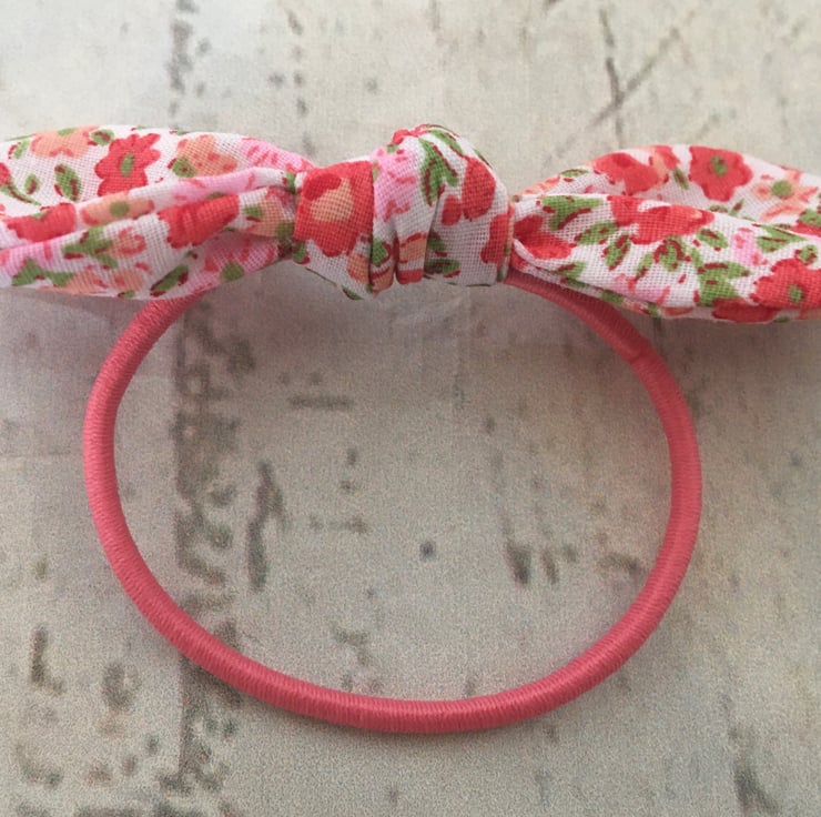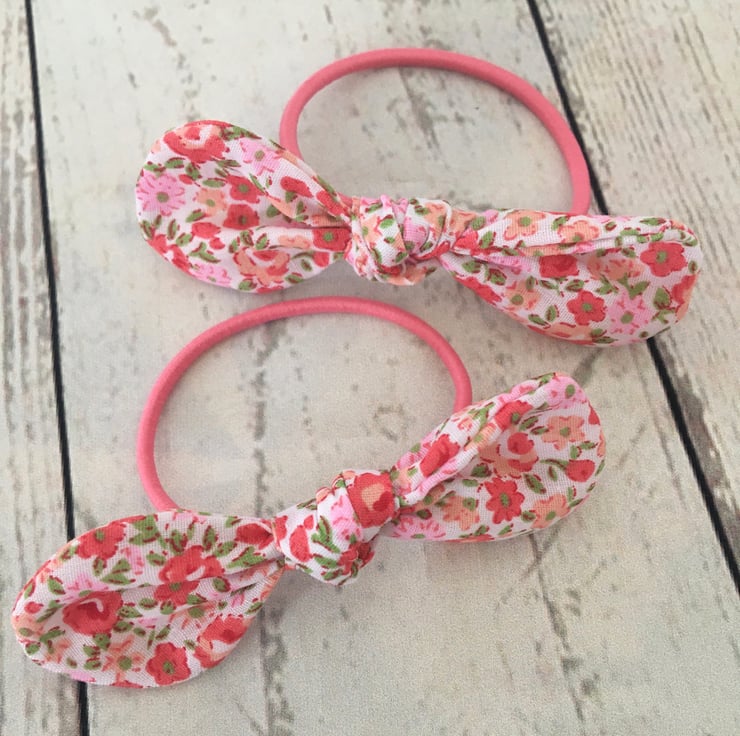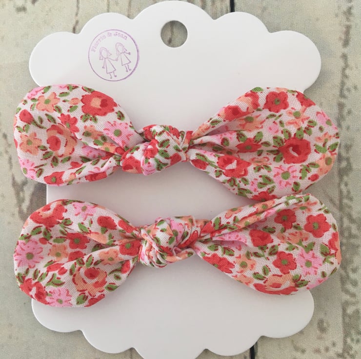 2 Hair bows in a sweet ditsy orange, peach and pink fabric.
