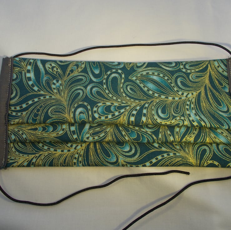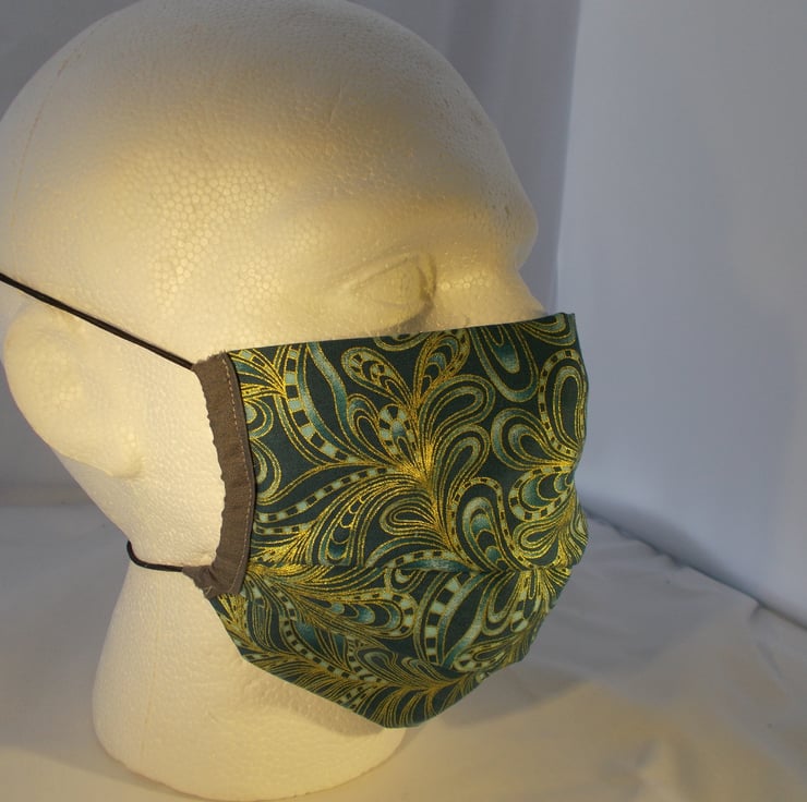 This is a washable double fabric face covering with interior pocket if required It is made from 100% cotton and comes with pre threaded cotton ties or elastic ties for you to adjust to size, please make your choice in the selection option.