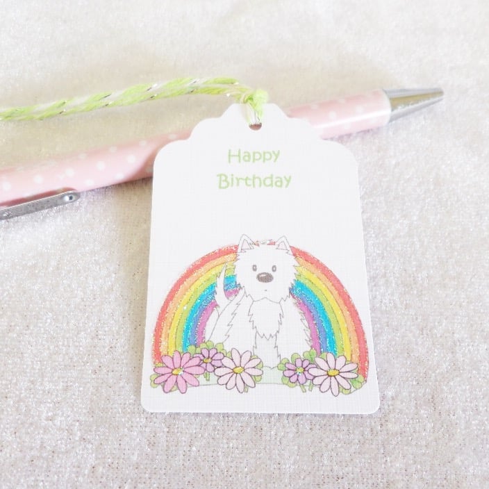 Rainbow Flower Westie Birthday Gift Tags - set of 4 tags