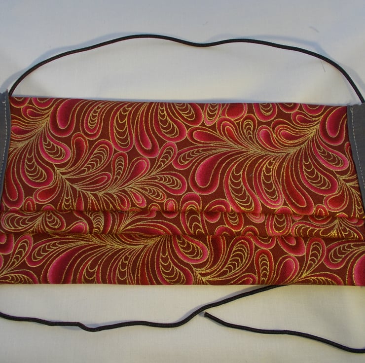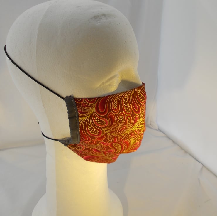 This is a washable double fabric face covering with interior pocket if required It is made from 100% cotton and comes with pre threaded cotton ties or elastic ties for you to adjust to size, please make your choice in the selection option.