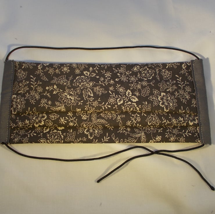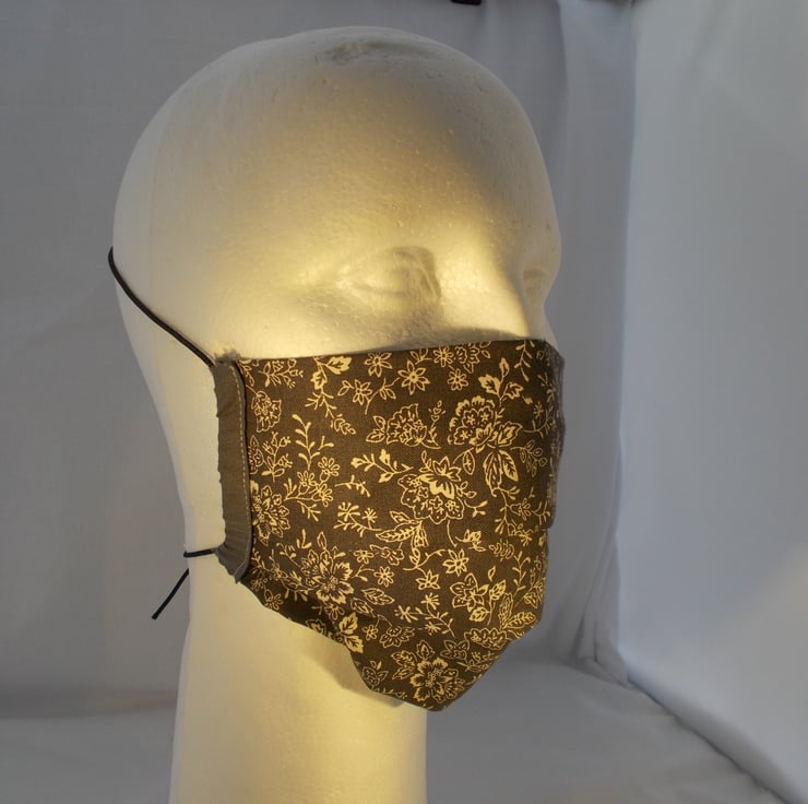 This is a washable double fabric face covering with interior pocket if required It is made from 100% cotton and comes with pre threaded cotton ties or elastic ties for you to adjust to size, please make your choice in the selection option.