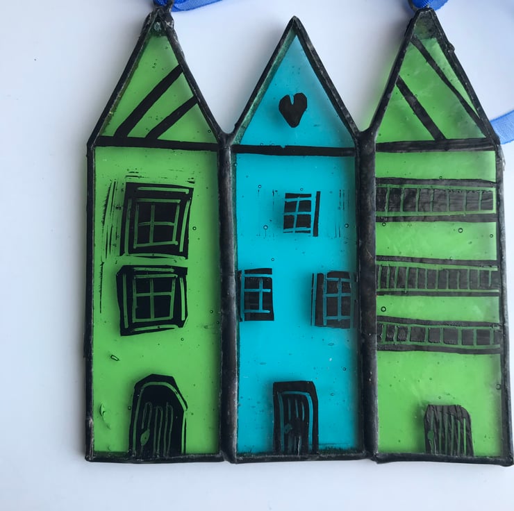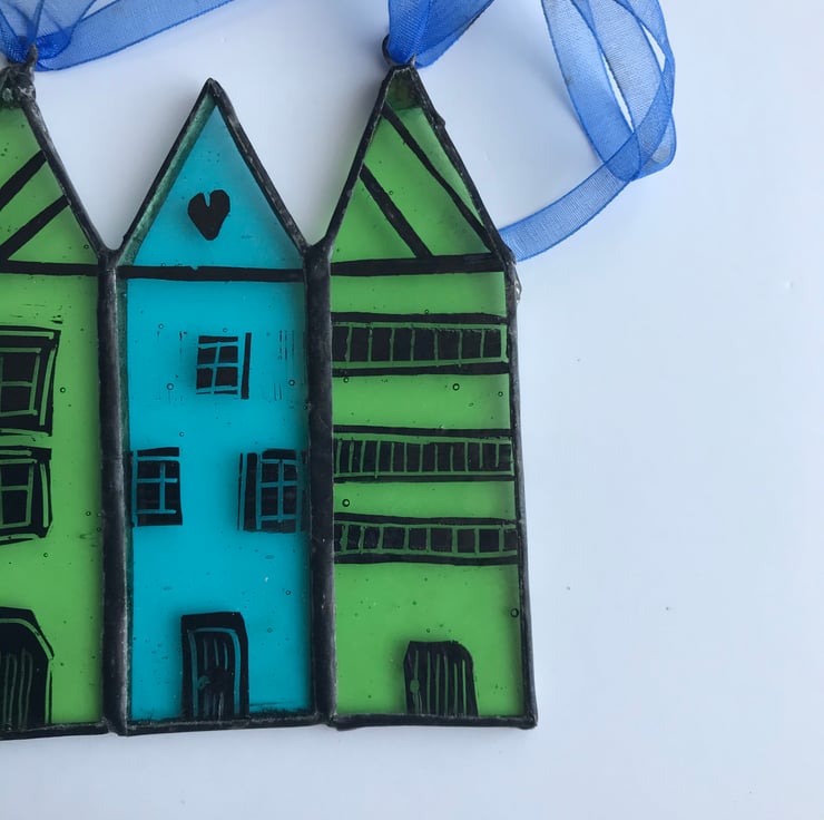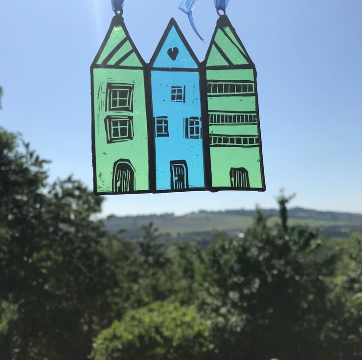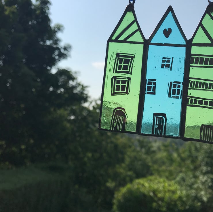 These stained glass houses will be perfect hanging in your window, in a tree on a calm summers day or on a white washed wall.