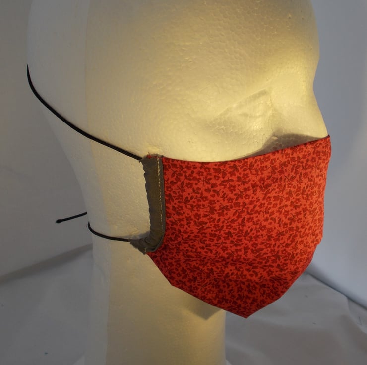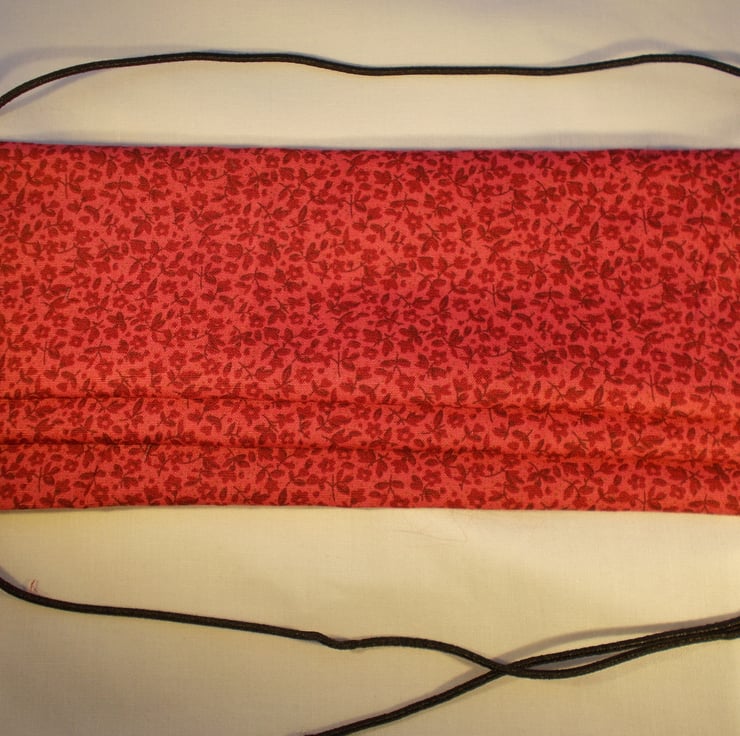 This is a washable double fabric face covering with interior pocket if required It is made from 100% cotton and comes with pre threaded cotton ties or elastic ties for you to adjust to size, please make your choice in the selection option.