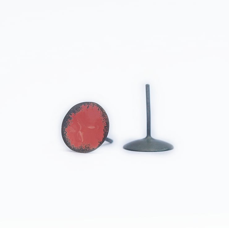 A simple tiny old rose earrings with hand painted jewellery enamel.