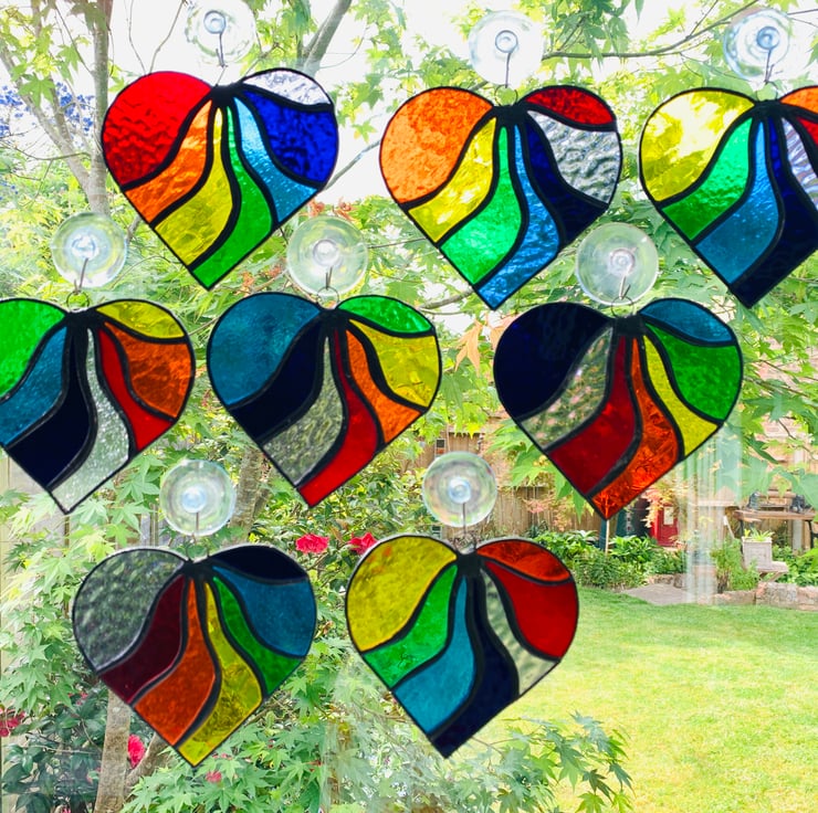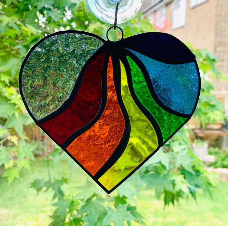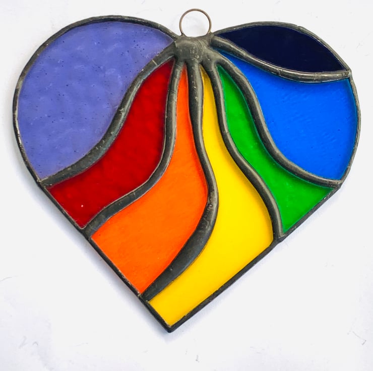 This beautiful heart is made from vibrantly coloured stained in all the colours of the rainbow.