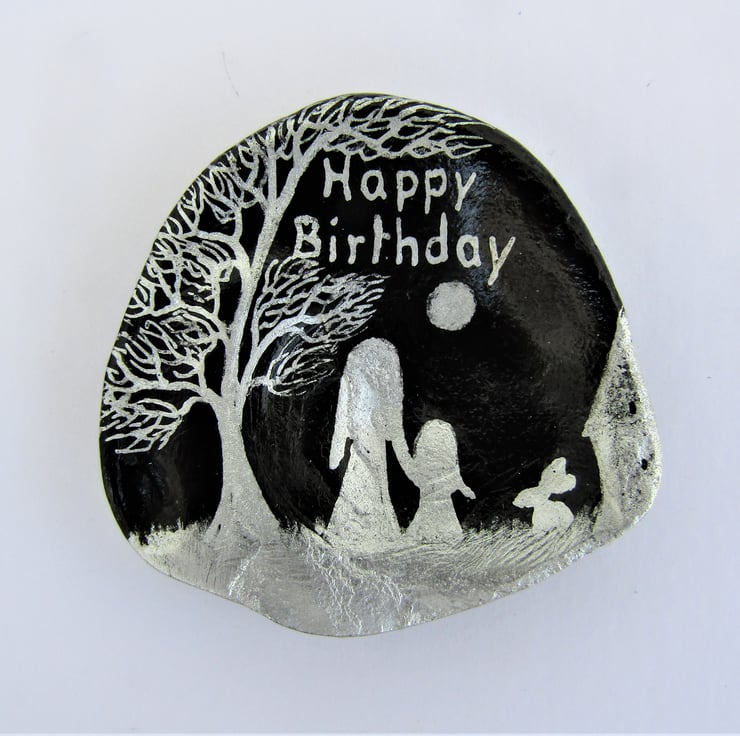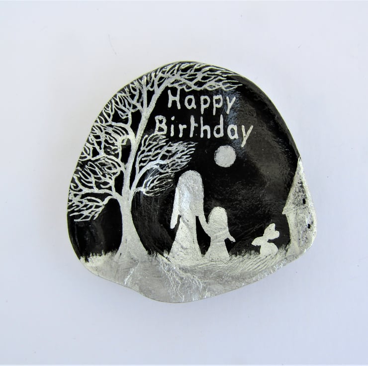 I custom paint on stones and shells and can paint something special for you in silhouette style: a special picture, word, name, initials, date, phrase....