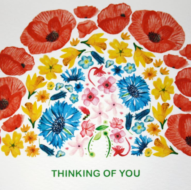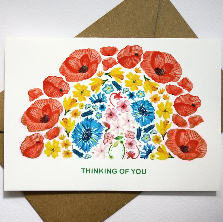 Thinking of you card featuring my original watercolour florals formed into a pretty rainbow.