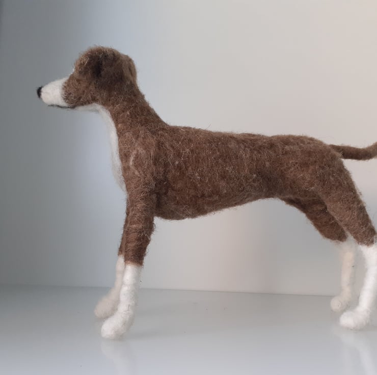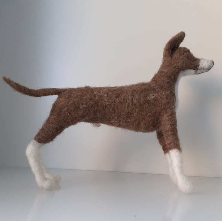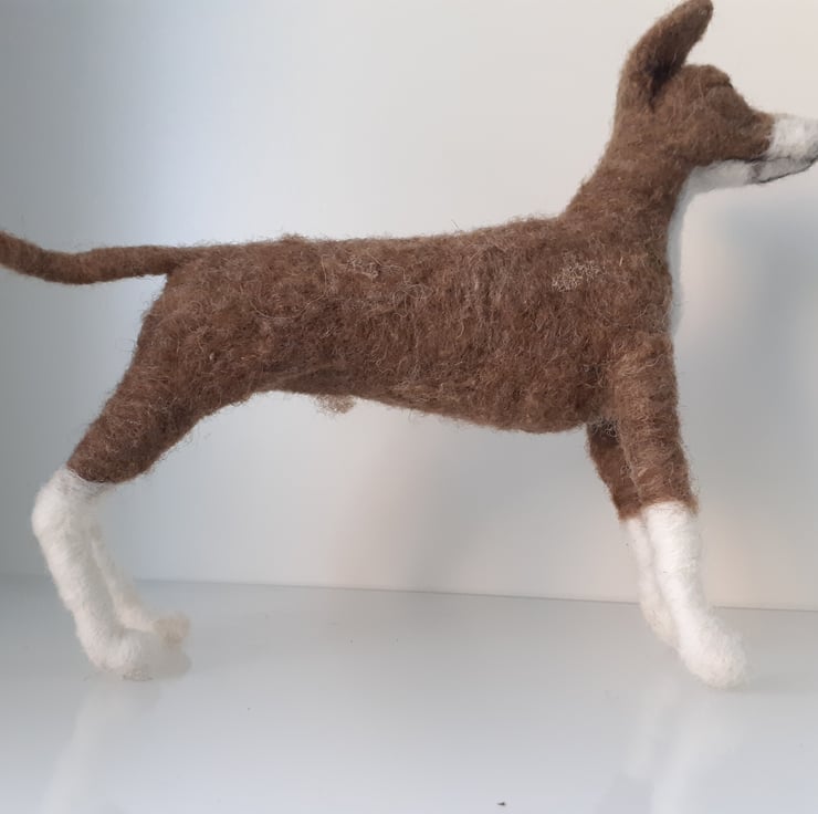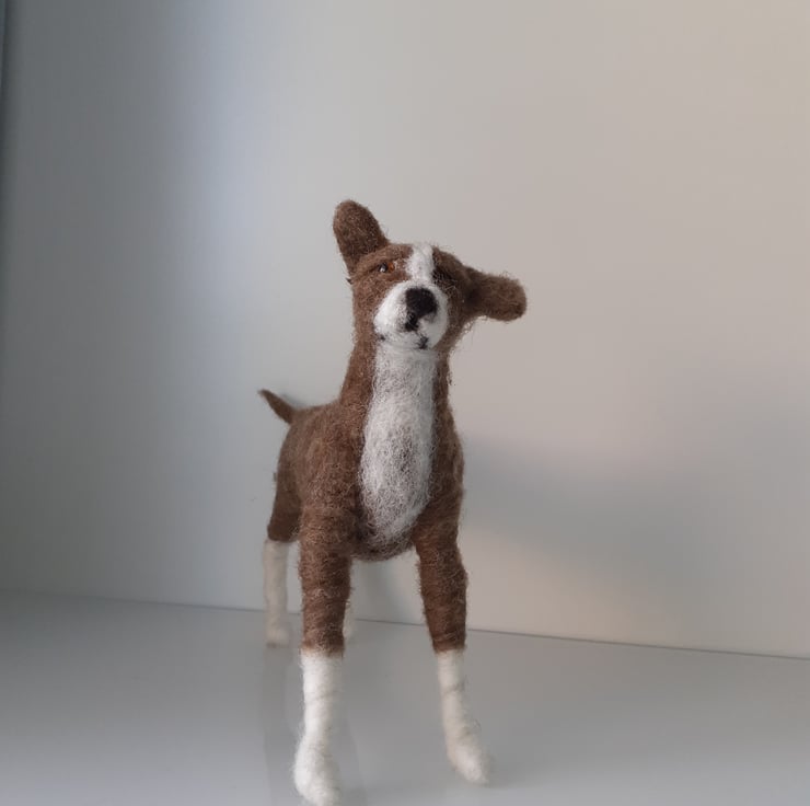 All wool,needle felted on a wire armature so that he can easily be posed as desired.