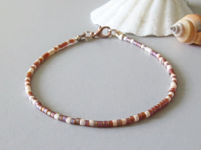 For this pretty peach & brown neutral tones seed bead stacking anklet, I've once again used high quality Miyuki Delica 1.8mm seed beads.