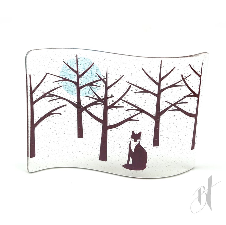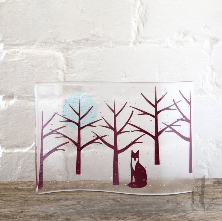 A Fox is sat amongst the forest trees in the moonlight. The piece is approximately 15cm high x 23cm and would look great on any side table, mantlepiece, desk, window sill or anywhere else you would like to admire it