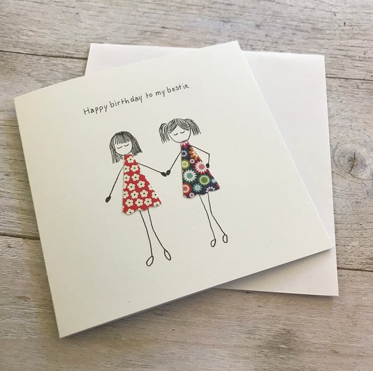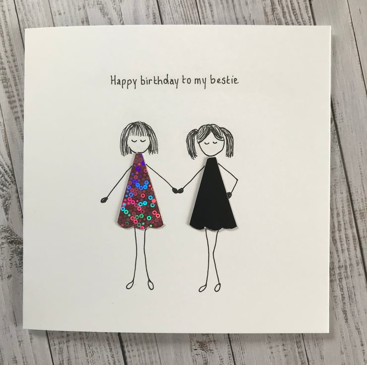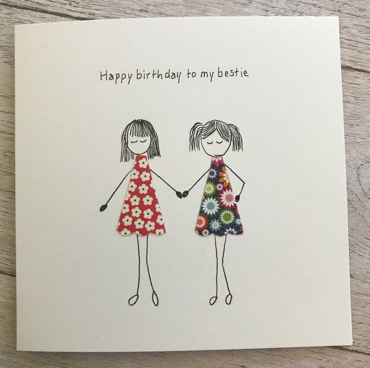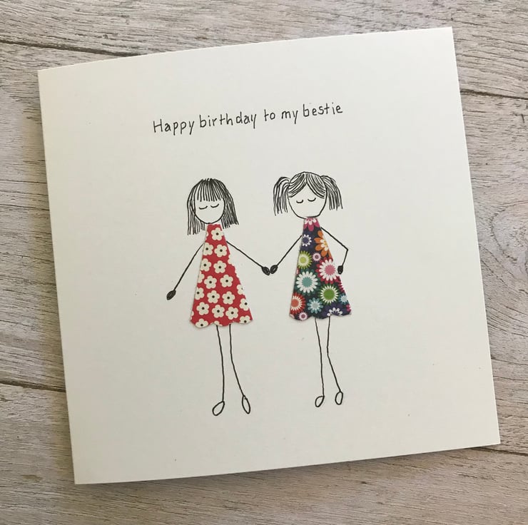 Hand drawn 'Happy birthday to my bestie' greetings card.