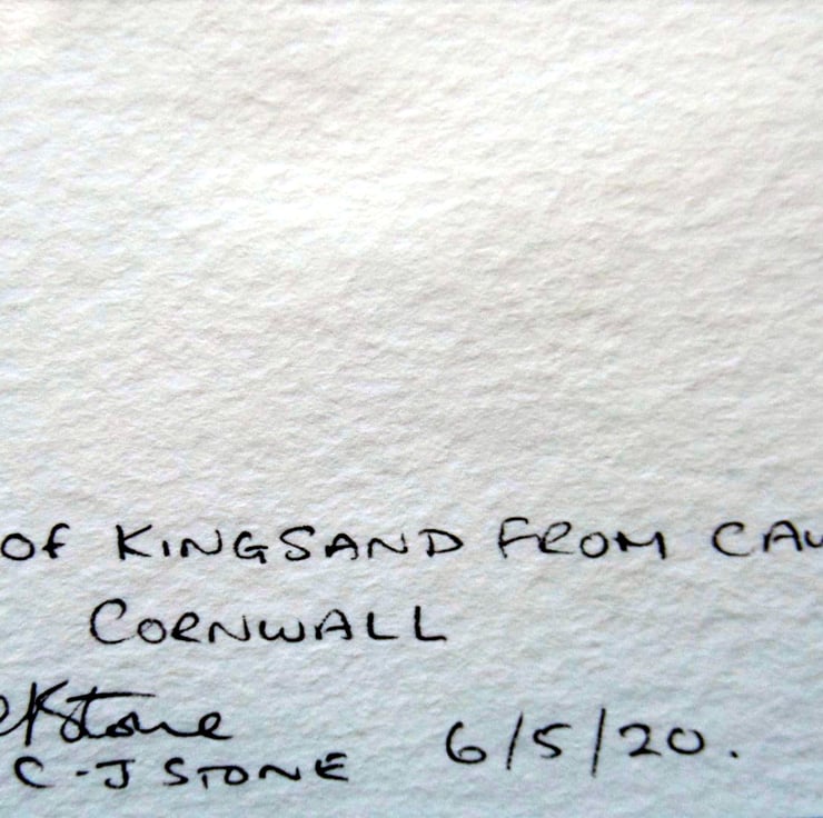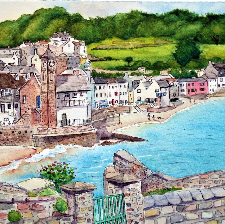 This watercolour over ink pen sketch shows the view of Kingsand, from neighbouring Cawsand in Cornwall. The composition is based on my own photograph. Cawsand and Kingsand are delightful coastal villages on the Rame Peninsula in Cornwall's south east corner.