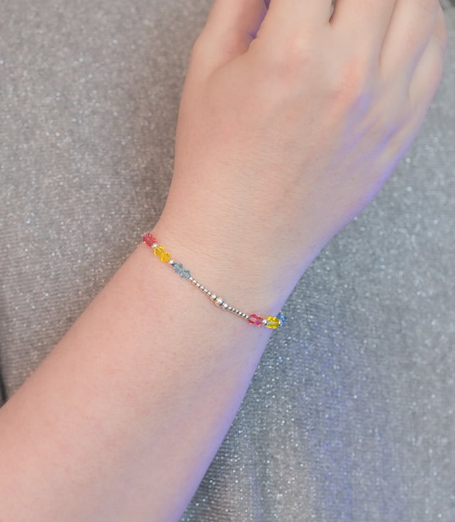With stretchy jewellers elastic (to slip over your wrist, no clasp),
