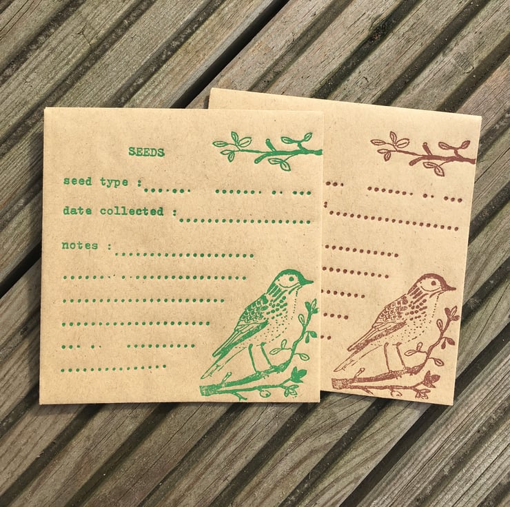 6 hand printed envelopes to keep your seeds in