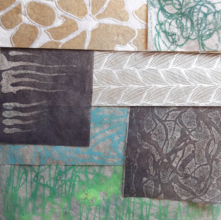 3 sheets of light but strong paper, monoprinted by me
