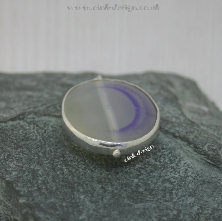 This cream/mauve agate has a stunning purple crescent shape on one side with it being more delicate on the other side.