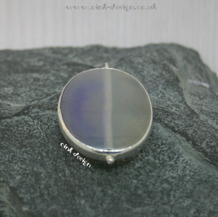 This slice of cream and mauve agate has been set in a Sterling Silver spectacle setting.